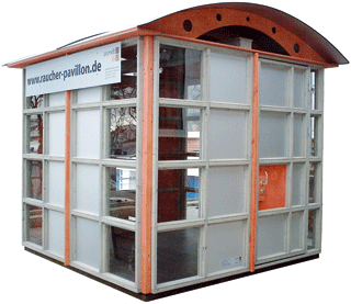 der m-Qub die gute form des raucher-pavillons. wir haben uns über die raucherproblematik in der gastronomie und im gewerbe gedanken gemacht. hier möchten wir Ihnen unsermodell "m-Qub" vorstellen. es ist in holzrahmenbauweise hergestellt, in einer ein- zigartigen, neuen form. der gesamte m-Qub hat eine grundfläche von 2,5 x 2,5m und eine gesamthöhe von 2,6m. er ist komplett demontierbar und hat eine feste bodeneinheit. die auf- bzw. abbauzeit beträgt 60 - 80 minuten. der boden und die ablageflächen im inneren sind in siebdruckqualität und somit feuchteresistent und abwaschbar. das gesamtkonstrukt ist in holzrahmenbauweise und bietet was füllung und farbgestaltung angeht unendliche möglichkeiten. das als segmentbogen ausgebildete dach dient gleichzeitig mit mit hilfe einer querbelüftung als abzugskamin für den zigarettenrauch. der m-Qub bietet ca. 8 - 10 personen bequem platz, kann aber auch mit sitzflächen bzw. bestuhlung um- gestaltet werden. damit ausreichend licht und wärme vorhanden sind, kann optional eine beheizungs- oder beleuchtungseinheit im oberen mittelbereich angebracht werden. um unbefugte benutzung zu vermeiden, ist der m-Qub selbstverständlich verschliessbar. weil der m-Qub nicht als festinstallation gilt, benötigt er keine baugenehmigung und ist dadurch sehr flexibel einsetzbar. so können Sie z. b. ihre terasse im sommer als solche nutzen und im winter oder an kalten oder regnerischen tagen dort innerhalb kürzester zeit den m-Qub aufstellen. desweiteren handelt es sich beim m-Qub um einen multifunktionalen kubus mit verschiedensten möglichkei- ten zur umgestaltung. z. b. umgestaltung zu einem verschließbaren verkaufsstand um zusätzliche abver- kaufsfläche zu schaffen, als offener stand für außen- und innenmessen. der m-Qub ist messekompatibel, da er optional mit rollen bzw. mit gabelstaplerchassis ausgerüstet werden kann und aufgrund seiner stabilen eigenkonstruktion (gegenüber zelten und anderen ähnlichen bauten) transportabel ist. der m-Qub ist entsprechend Ihrer wünsche gestaltbar. das geht hin bis zu farbgestaltung und im rahmen ihres corporate identity oder ihres firmenlogos. um ihre kostenseite zu entlasten, besteht für sie die möglichkeit unsere leasingangebote in anspruch zu nehmen. gerne unterbreiten wir ihnen ein individuelles angebot, bitte rufen Sie uns an - wir werden Sie über preise und einzelheiten informieren. fragen sie uns bitte auch nach individuellen gestaltungsmöglichkeiten und gesamtkonzepten für Ihren außen- bereich bzw. für Ihre outdoorgastronomie. sollten Sie noch andere einsatzmöglichkeiten